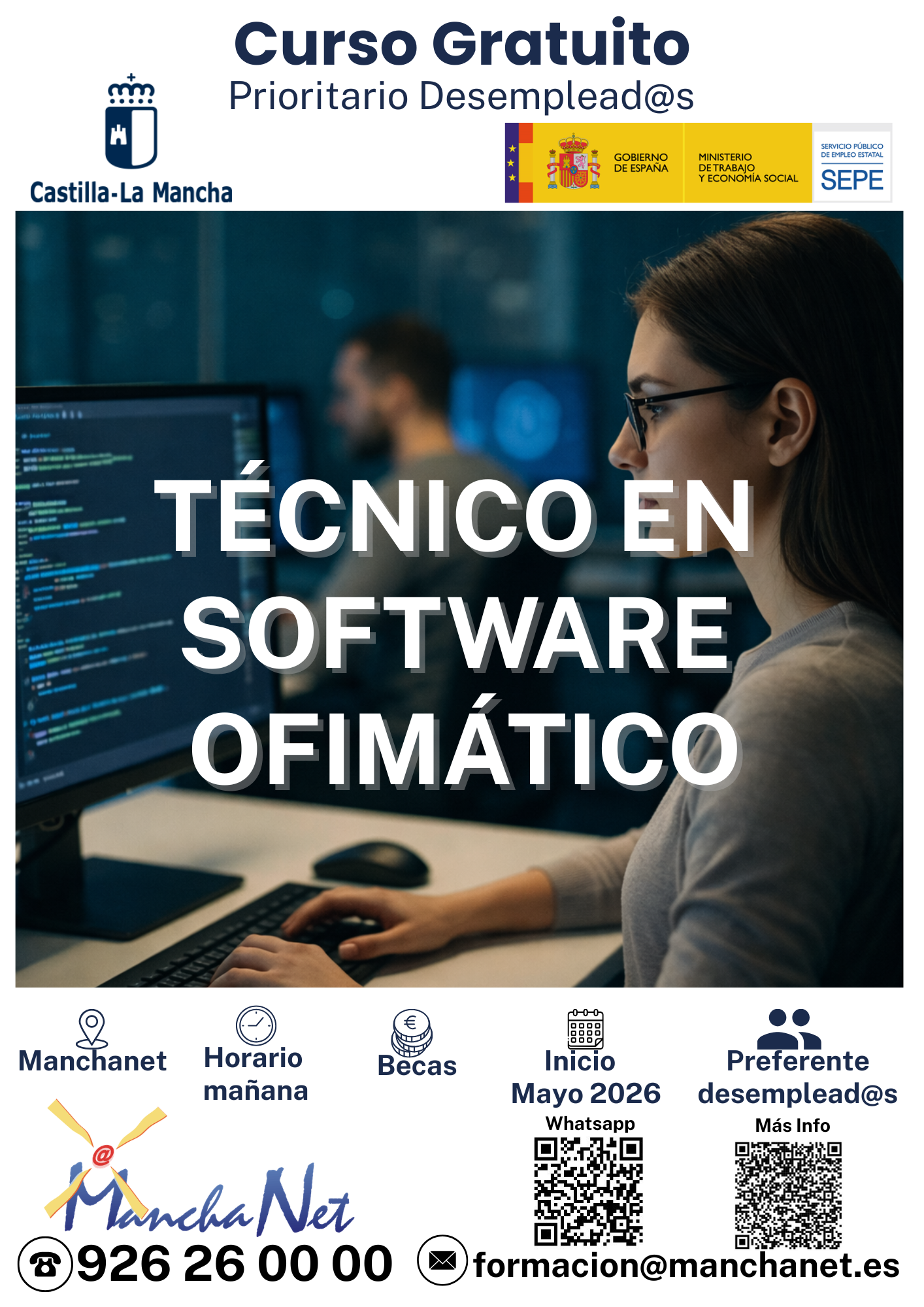 Infórmate en el teléfono 926260000 o en el email formacion@manchanet.es